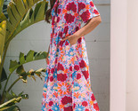 Rose Floral Tied Front High Waist Short Sleeve Loose Long Dress