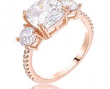 Rose Gold Plated Brass Cushion-Cut Cubic Zirconia 3-Stone Engagement Ring