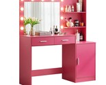 - Rose Pink Vanity Desk with Mirror, Lights & 2 Drawers, Eco-Friendly
