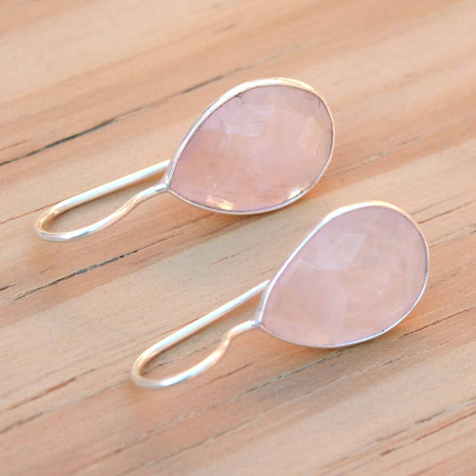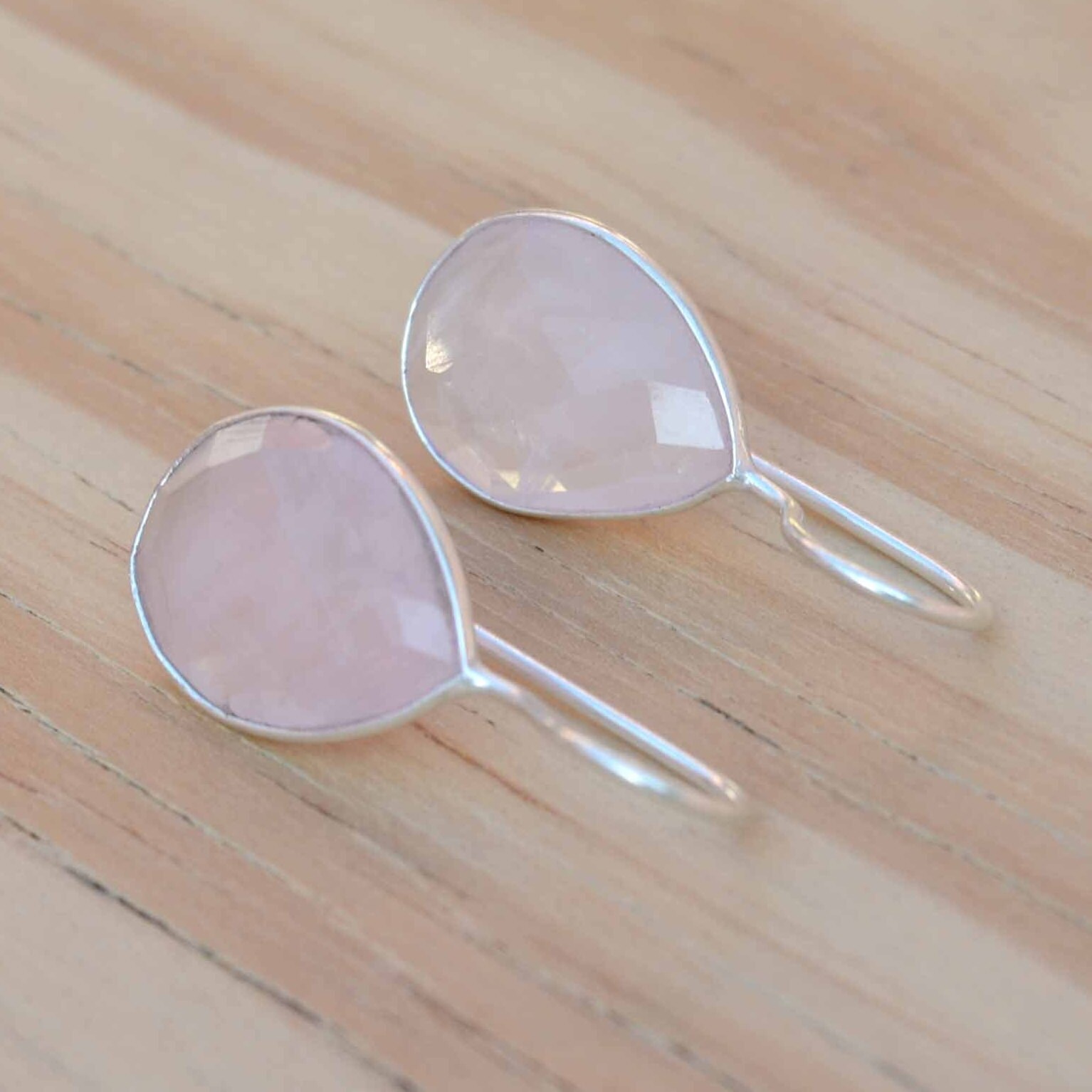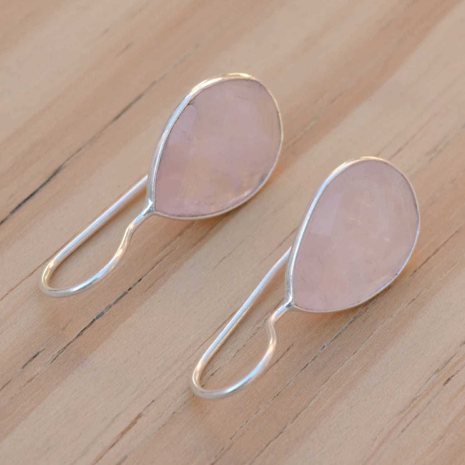 - Rose Quartz Earrings Teardrop Blush Pink Earrings Light Pink Dainty Dangle Drops