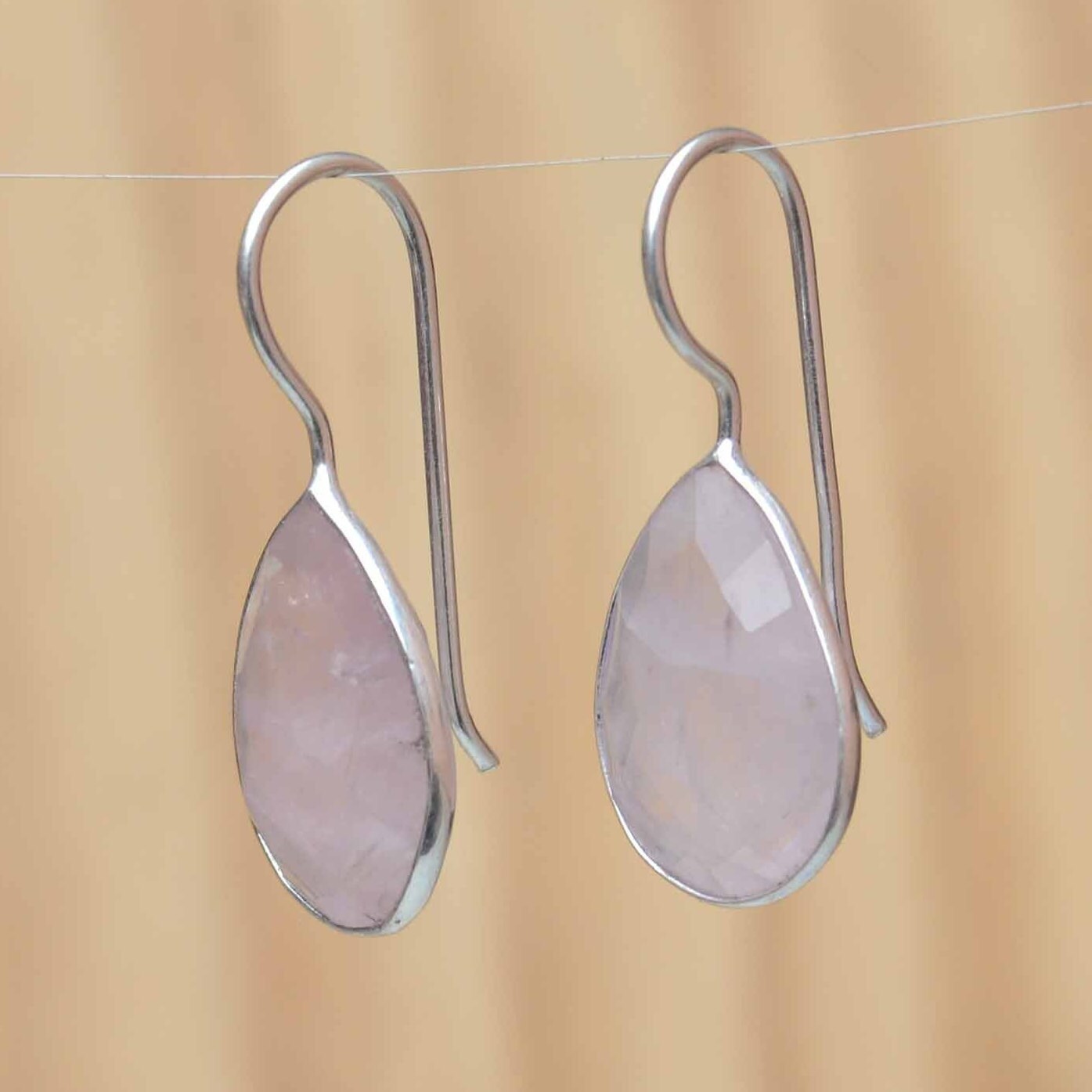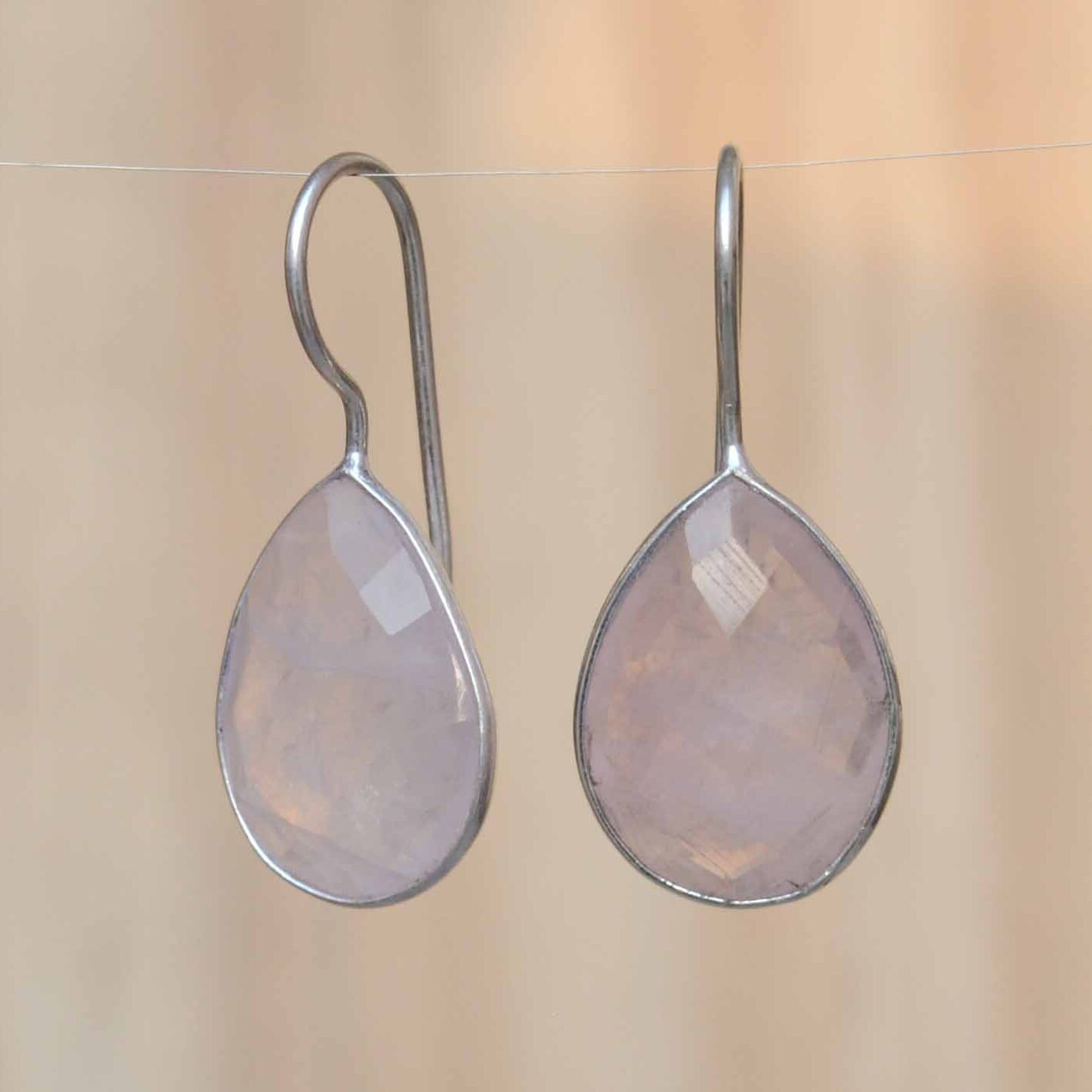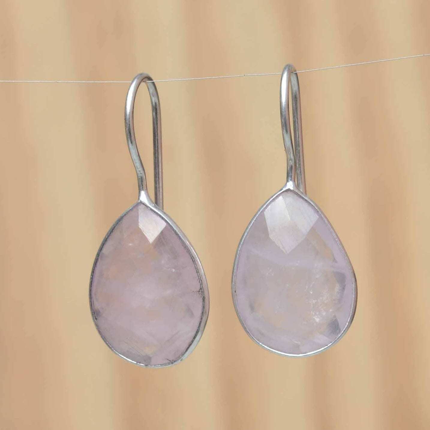 - Rose Quartz Earrings Teardrop Blush Pink Earrings Light Pink Dainty Dangle Drops