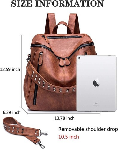 High Quality Material - Durable leather, with Waterproof function. Detailed streamlined stiching,every stitching joints have been reinforced for durability.Double Zipper Design is convenient for opening in two directions.Rivet highlighted the backpack , is the perfect choice to your favorite casual looks.