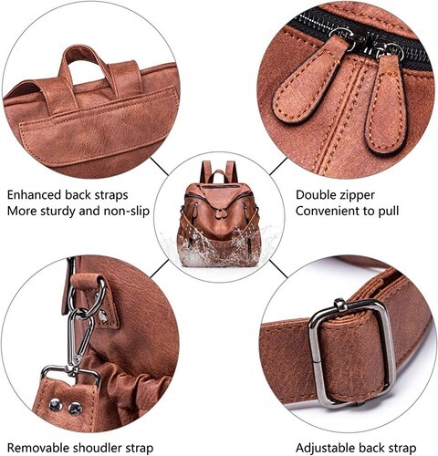 Convertible Versatile Backpack - Three different carry ways for various occasions.This leather backpack features top handle, a detachable shoulder strap and adjustable back straps.you can simply use it as a casual backpack,stylish top handlebag or a special shoulder bag.