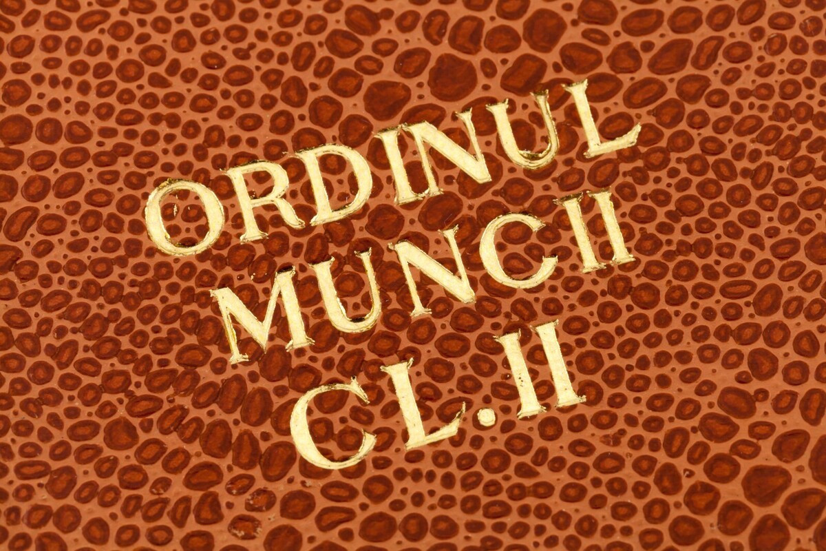 - Roumanie Ordre De Labor Rsr Badge, 2nd Classe Mini Ruban Barre Et Original Boite