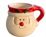 Rounded Santa Mug Holly Berries Red Nose Smiling Christmas Hot Chocolate Cute
