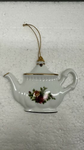 - Royal Albert Old Country Roses Teapot Christmas Ornament 1962