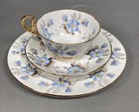 Royal Grafton Fine Bone China Blue Floral Cup/Saucer/Plate - England #84551. All in good condition. The cup measures 2?Hx3.75?D. The saucer is 5?D and the dessert plate is 7.75?D.