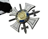 Discover the exquisite Royal Order of the Crown II Class Replica Medal, a stunning homage to a remarkable piece of history. This beautifully crafted replica, produced by the esteemed German company Godet Son, mirrors the original medals awarded between 1916 and 1918 during the First World War. The medal is a significant symbol of the German Empire, recognizing outstanding bravery and leadership displayed on the battlefield by soldiers and officers.The design of the Royal Order of the Crown II Class with swords is truly majestic. The silver cross, accented with vibrant enamel, features a central golden medallion crowned to signify royal authority and honor. The addition of swords to the design further represents the military valor for which this prestigious award was conferred. Renowned as one of the most celebrated manufacturers of medals and decorations in Germany during the 19th and 20th centuries, Godet Son's craftsmanship is evident in every detail, showcasing exceptional artistry and precision. This remarkable piece is not only a significant collectible for military award enthusiasts but also an emblem of historical importance that appeals to history buffs.Please feel free to reach out with any inquiries. Note that the listed items are intended exclusively for collectors. I affirm that I am not a member of any movement that seeks to suppress human rights or promotes animosity against any group based on nationality, race, or class, nor do I support such movements.
