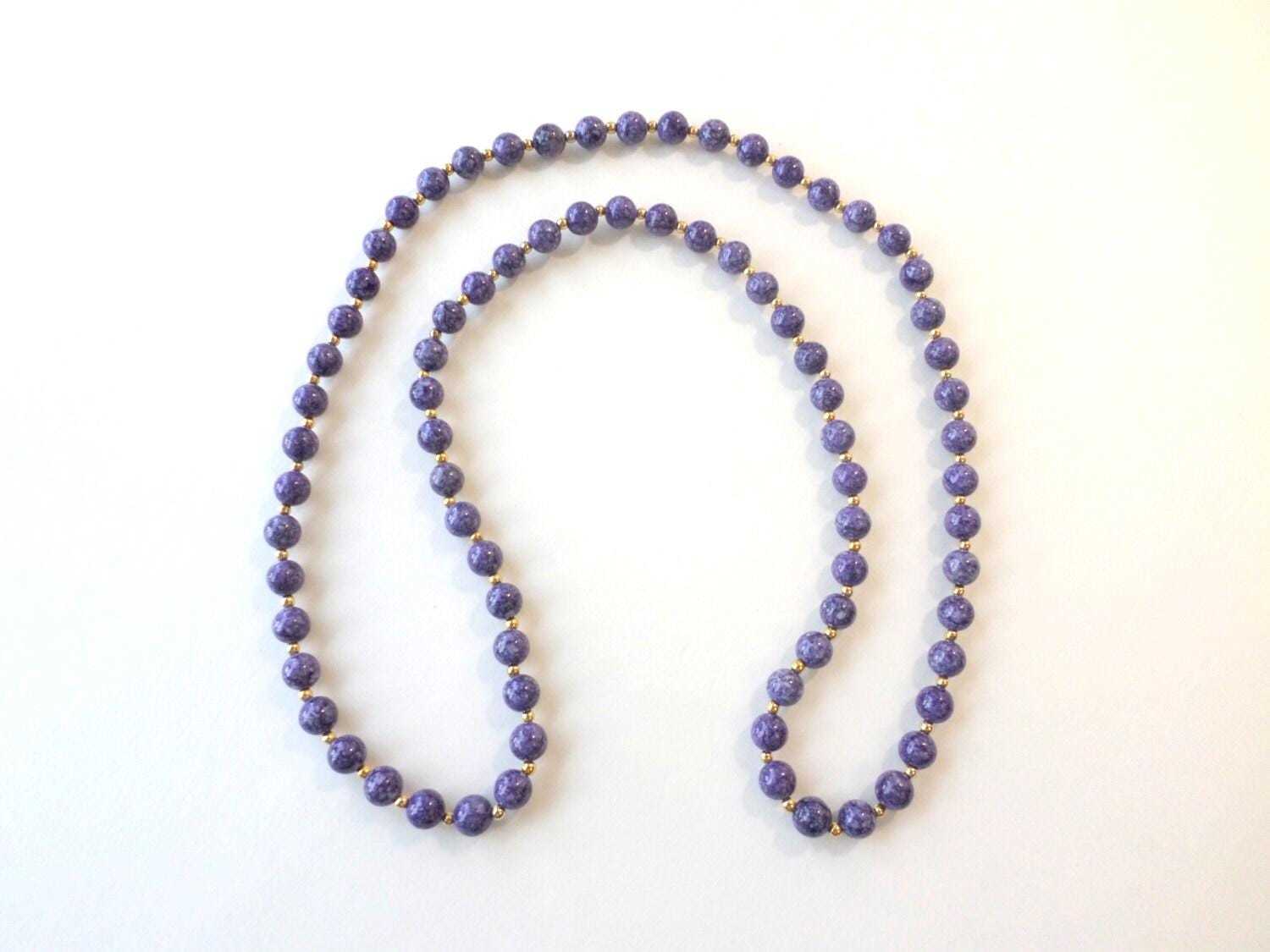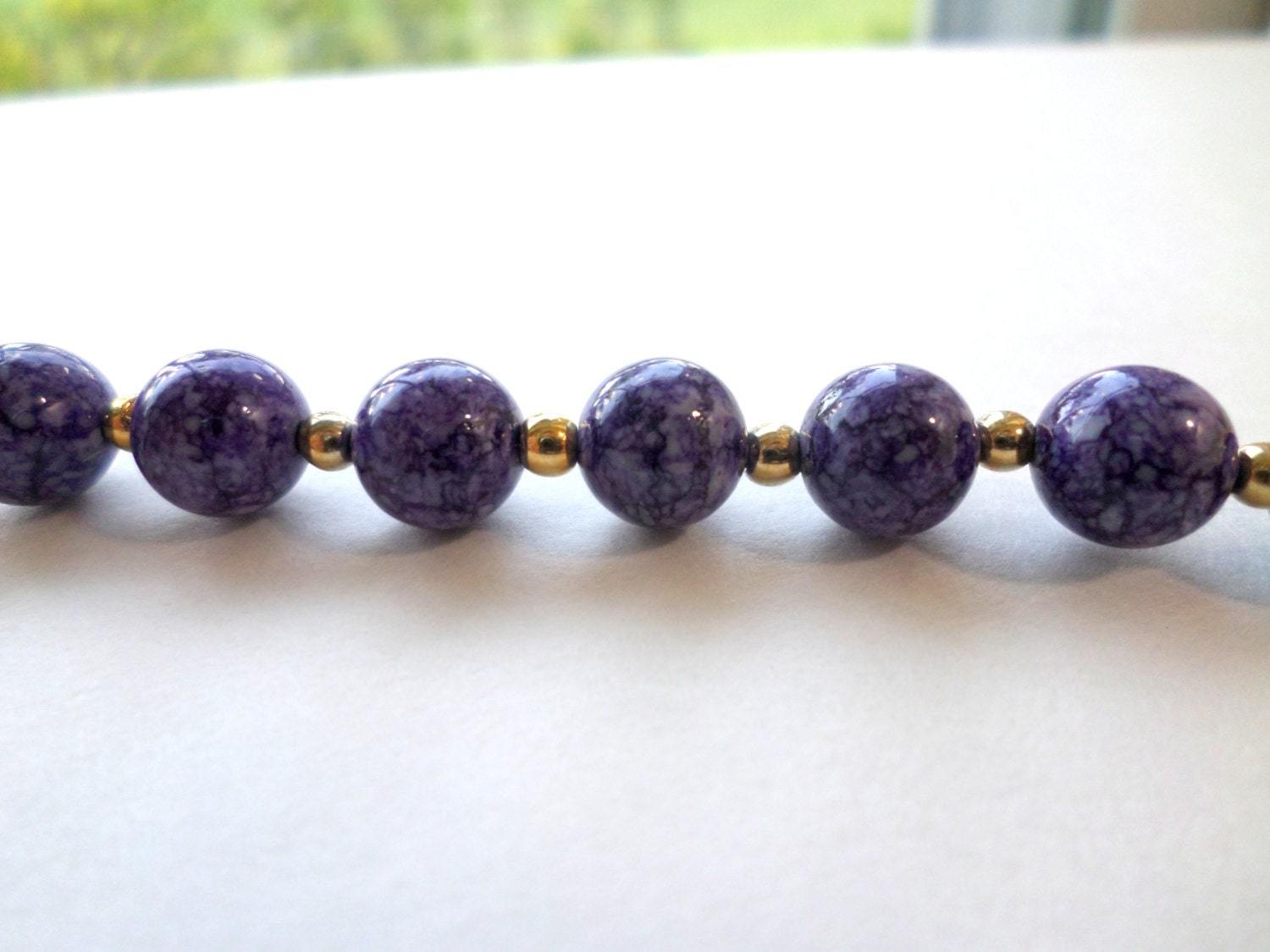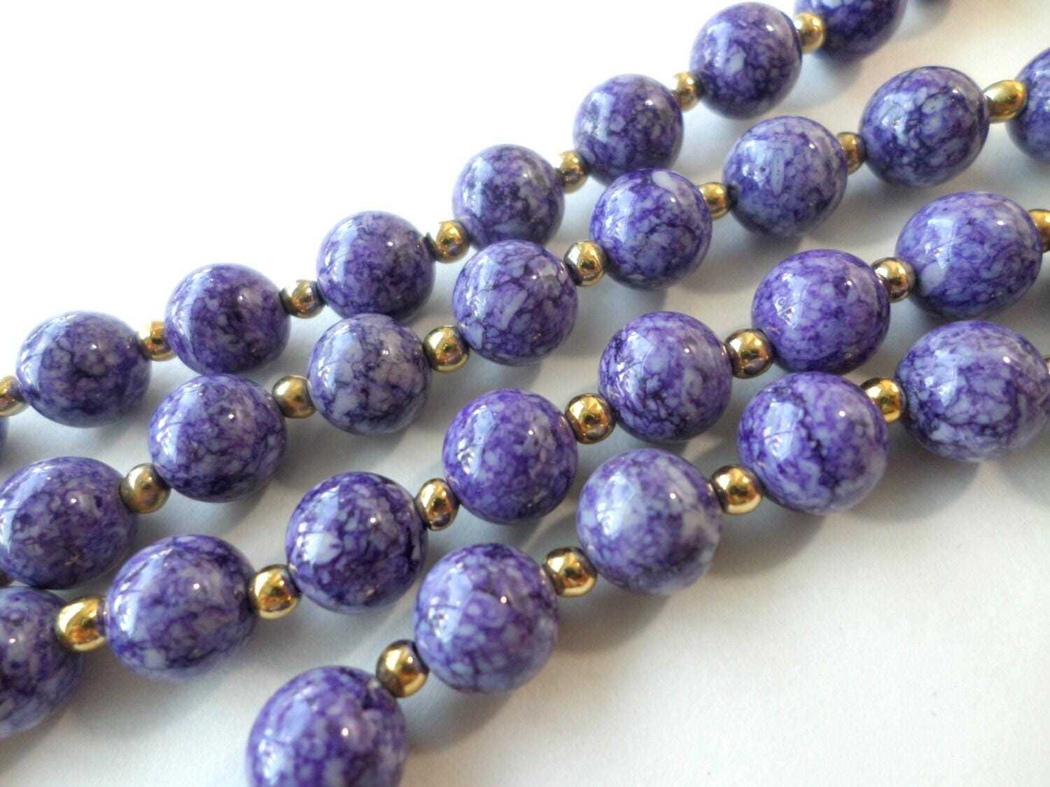 ?Materials: High quality vintage porcelain beads on purple silk, mid-century import