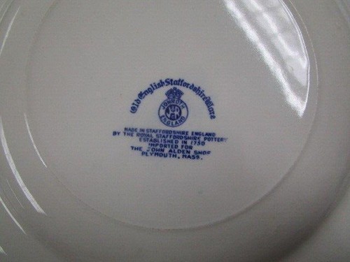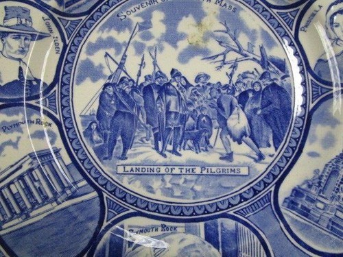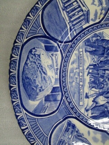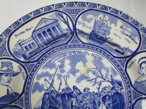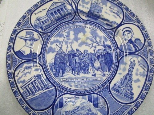 Antique Royal Stafordshire historical plate 10" Plymouth Mass blue [bp44]