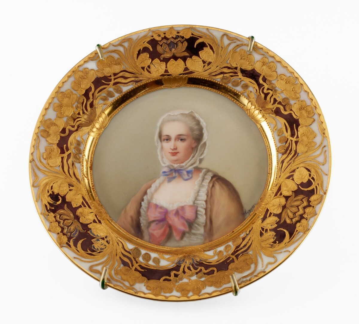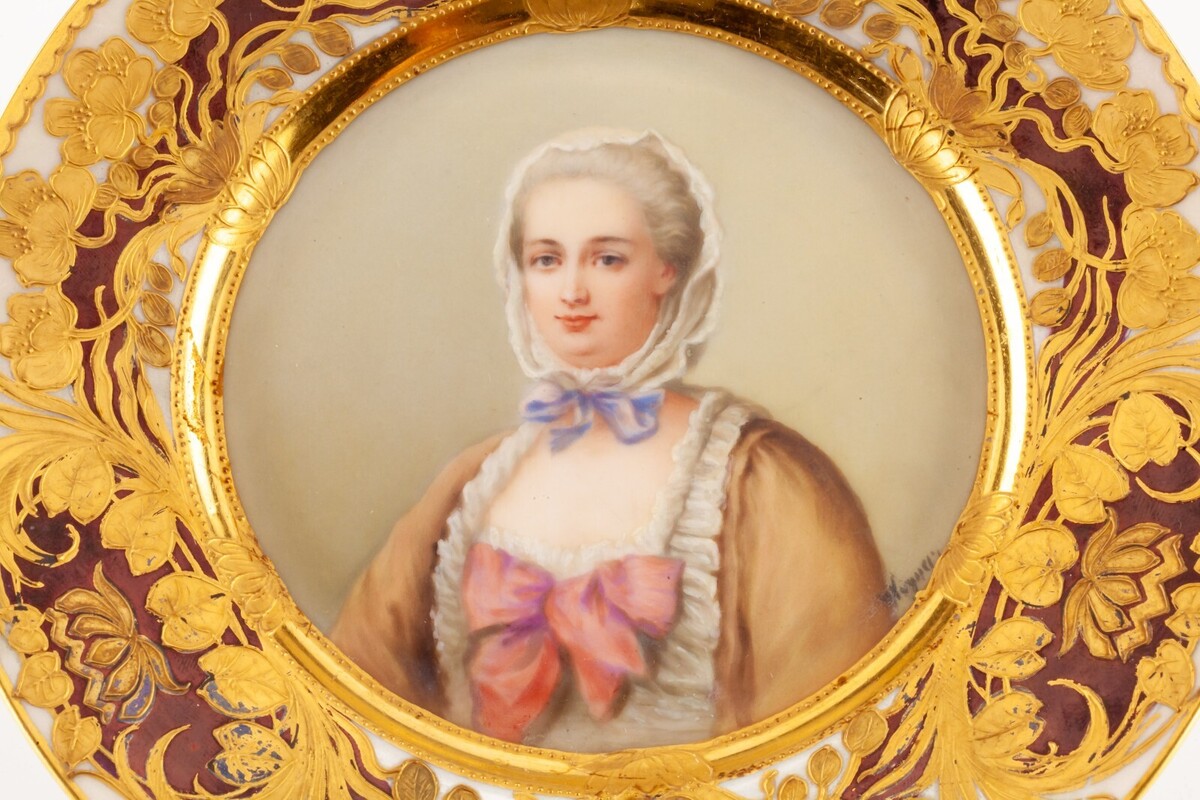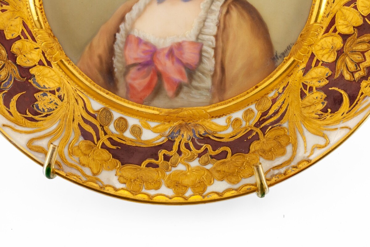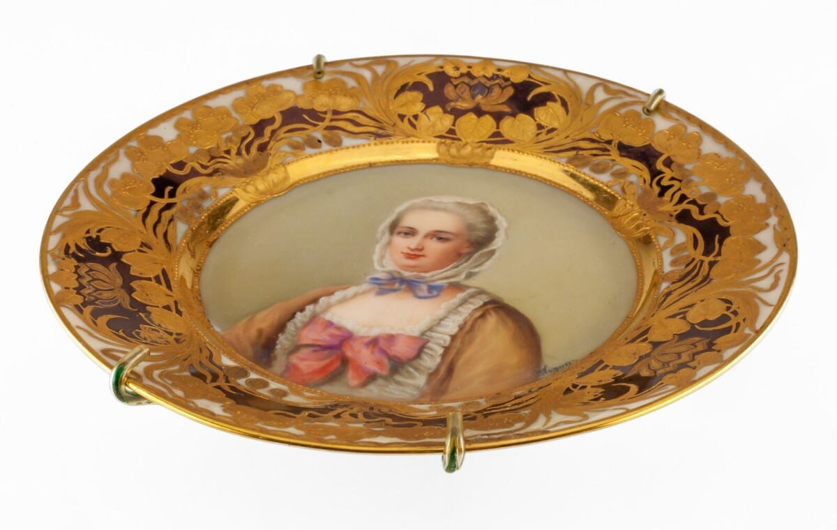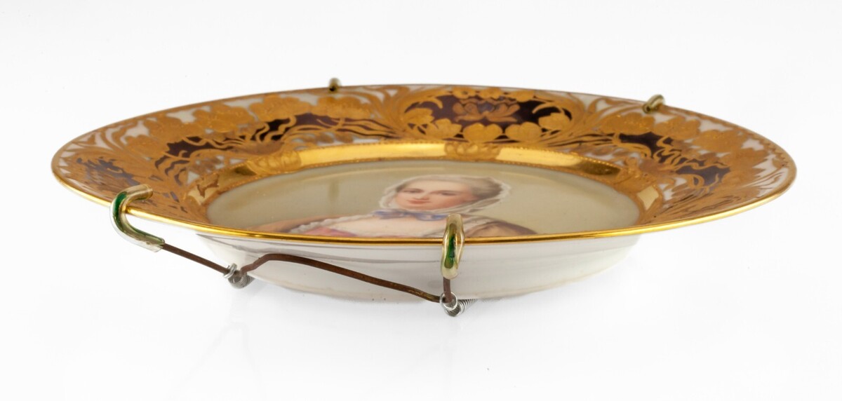 Overall plate is in good condition. Some minor rub/losses on goldleaf. No chips or cracks. No evident crazing. See photos for details.