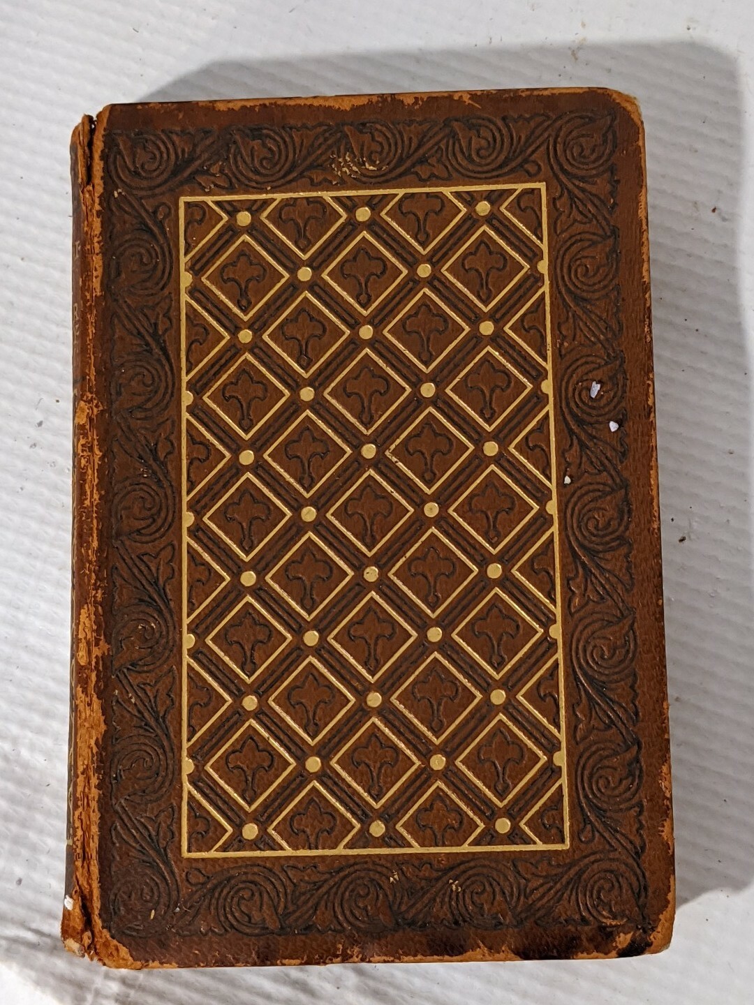 A vendre est une edition de poche reliee en cuir de Rubaiyat d'Omar Khayyam par Crowell Publishing imprime par Riverside Press a Edimbourg en Ecosse.