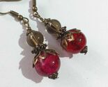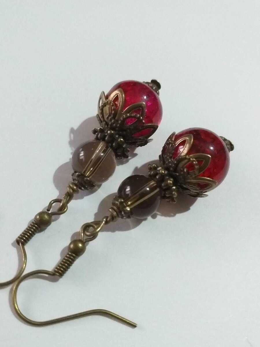 Beautiful Victorian antique bronze glass beads earrings . Drop earrings . Dangle earrings . Boho earrings . Bohemian earrings . Red crackle glass beads and fine floral bronze ornaments Boho earrings . Vintage style earrings . Gypsy beautiful earrings . Beaded earrings .