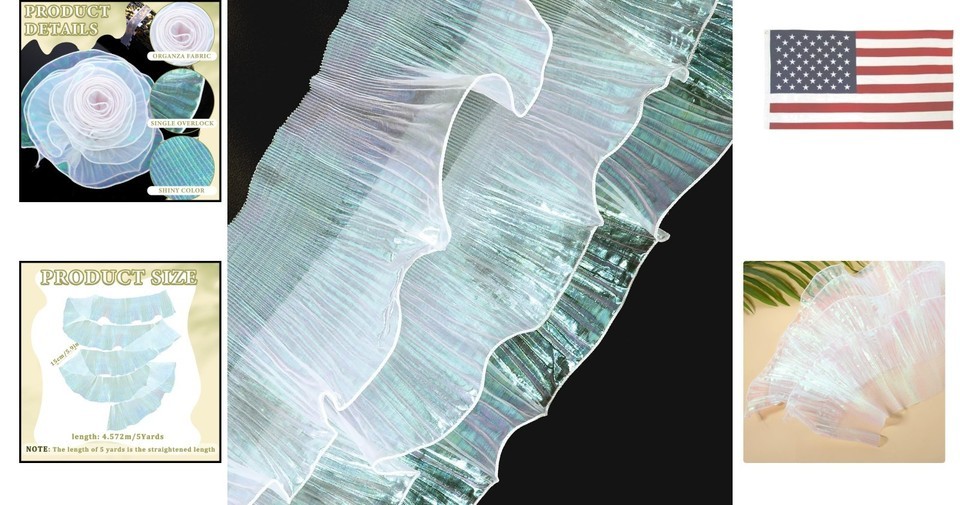 Ruffle Pleated Chiffon Trim Iridescent Fabric Ribbon Organza Sheer Ruffled ? ? ? ? ? ? ? ? ? ? ? ? ? ? ? ? ? ? Ruffle Pleated Chiffon Trim Iridescent Fabric Ribbon Transform your creative visions into reality with our exquisite Ruffle Pleated Chiffon Trim Iridescent Fabric Ribbon. Crafted to perfection, this stunning ribbon serves as the ideal embellishment for a multitude of projects. Product Details: Ample Quantity: 5 yards of high-quality iridescent ribbon to ensure you have enough material for all your crafting needs. Quality Chiffon Material: Made primarily of chiffon, providing a luxurious touch and elegant texture that's perfect for sophisticated projects. Iridescent White Color: Features a captivating iridescent white hue that shimmers and brings charm to any design. Vintage Pleated Design: The intricate pleats offer timeless elegance, adding depth and sophistication to your creations. Wide Range of Applications: Ideal for DIY costumes, bridal gowns, accessories, packaging, and so much more. Why You?ll Love This Ribbon: Exceptional Quality: The ribbon?s elastic nature and firm bottom allow for easy shaping, enabling you to create beautiful decorations effortlessly. Stunning Design: The vintage-inspired pleats combined with the iridescent finish make every project an eye-catching masterpiece. Versatile Use: Whether you?re transforming old clothes, crafting Halloween outfits, or adding the perfect finishing touch to a bridal gown, this ribbon is your go-to choice. Perfect Dimensions: With a width of 15cm and a generous length of 5 yards, you have the freedom to create elaborate designs without limit. Unleash your creativity with our Ruffle Pleated Chiffon Trim Iridescent Fabric Ribbon and elevate your crafty endeavors to new heights. Don?t miss the opportunity to bring elegance and charm into your projects - order your ribbon today! Shipping Free Fast Shipping - We offer free shipping to most of the USA with a normal delivery time of 3-7 days. However, due to the current situation, additional delivery time (up to 3 weeks) may be required for some items. Alternative Carriers - We may use alternative carriers (e.g. USPS, FedEx, UPS, etc.) to ensure your package arrives safely and on time. Due to the use of multiple carriers, we are unable to provide a tracking number automatically. Handling Time - Orders are processed and shipped within 1-2 business days of receiving cleared payment. Shipping Restrictions - Shipping to Alaska, Hawaii, Puerto Rico, Guam, and other US territories may incur shipping charges or delivery restrictions. Please contact us before ordering, or your order can be refunded/cancelled. State Restrictions - There may be restrictions based on your state of purchase. For example, certain items may not be shipped to California due to state regulations. Contact for Tracking Updates - If you require tracking updates or have any concerns about the delivery of your order, please feel free to contact us, and we will be happy to assist you. Return 30-Day Hassle-Free Returns - We want you to be completely satisfied with your purchase. If you are not, you can return the item within 30 days of receiving it for a full refund or exchange. Easy Return Process - To start a return, simply contact us and we will provide you with a prepaid return shipping label and detailed instructions. Restocking Fee - There are no restocking fees for returns. However, the buyer is responsible for return shipping costs if the return is not due to a seller's error. Refund Processing Time - Refunds will be processed within 5 business days of receiving the returned item in its condition. Payment We accept all major credit cards, PayPal, and Apple Pay for your convenience. Your payment information is secure and encrypted to ensure a safe and seamless transaction. Please complete your payment within 3 days of purchase to avoid any delays in shipping. Feedback Your feedback is extremely important to us. We strive to provide the best products and customer service possible. If you are satisfied with your purchase, please take a moment to leave us a positive review. If you have any concerns or issues with your order, please contact us before leaving negative feedback. We are committed to resolving any problems and ensuring your satisfaction. Contact Us If you have any questions or concerns, please feel free to out to our customer support team. You can contact us through the messaging system. We are available Monday to Friday, 9:00 am to 5:00 pm EST, and we will do our best to respond to your inquiry within 24 hours. Buy it now and enjoy a pleasant shopping experience! Unit Quantity: 5 Yards Pattern: Solid Date First Available: July 5, 2024 Unit Count: 1 Occasion: Christmas, Wedding, Anniversary, Birthday, Halloween Item model number: 132 Fabric Type: Chiffon Materials sourced from: China Product Dimensions: 180"L x 5.6"W Item Height: 1 Manufacturer: Dongyang Dongcai Garment Accessories Co.,Ltd. Style: Art Deco Number of Items: 5 Item Weight: 47 grams Features: Elastic,Ruffled,Pleated Intended Use: Costume,Dress,Decoration Type: Ruffle Material: Polyester Color: Iridescent White Unit of Sale: Single Pack Item Length: 1 Item Width: 1