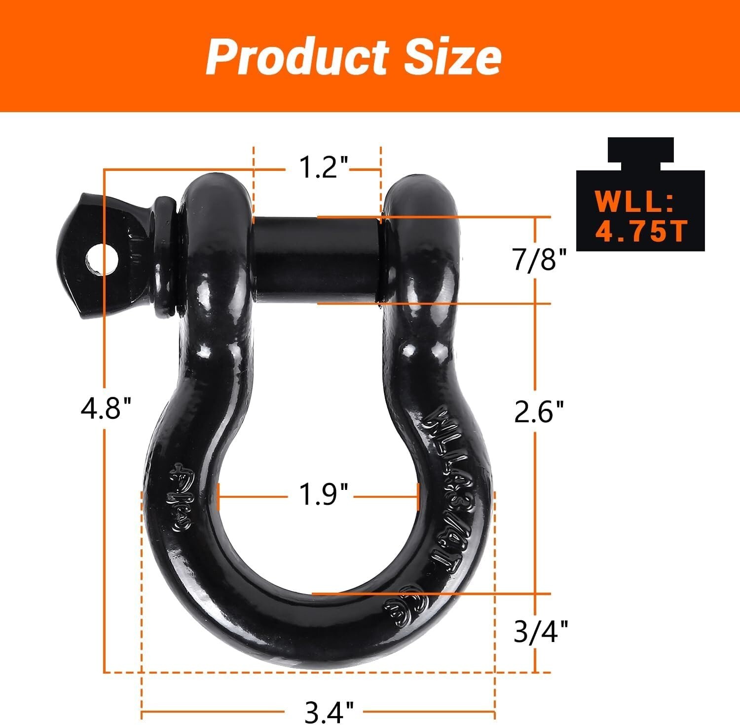 - Rugged D Ring 3/4'' Shackle Pack - 44,000 lbs Break Strength, Universal Fit