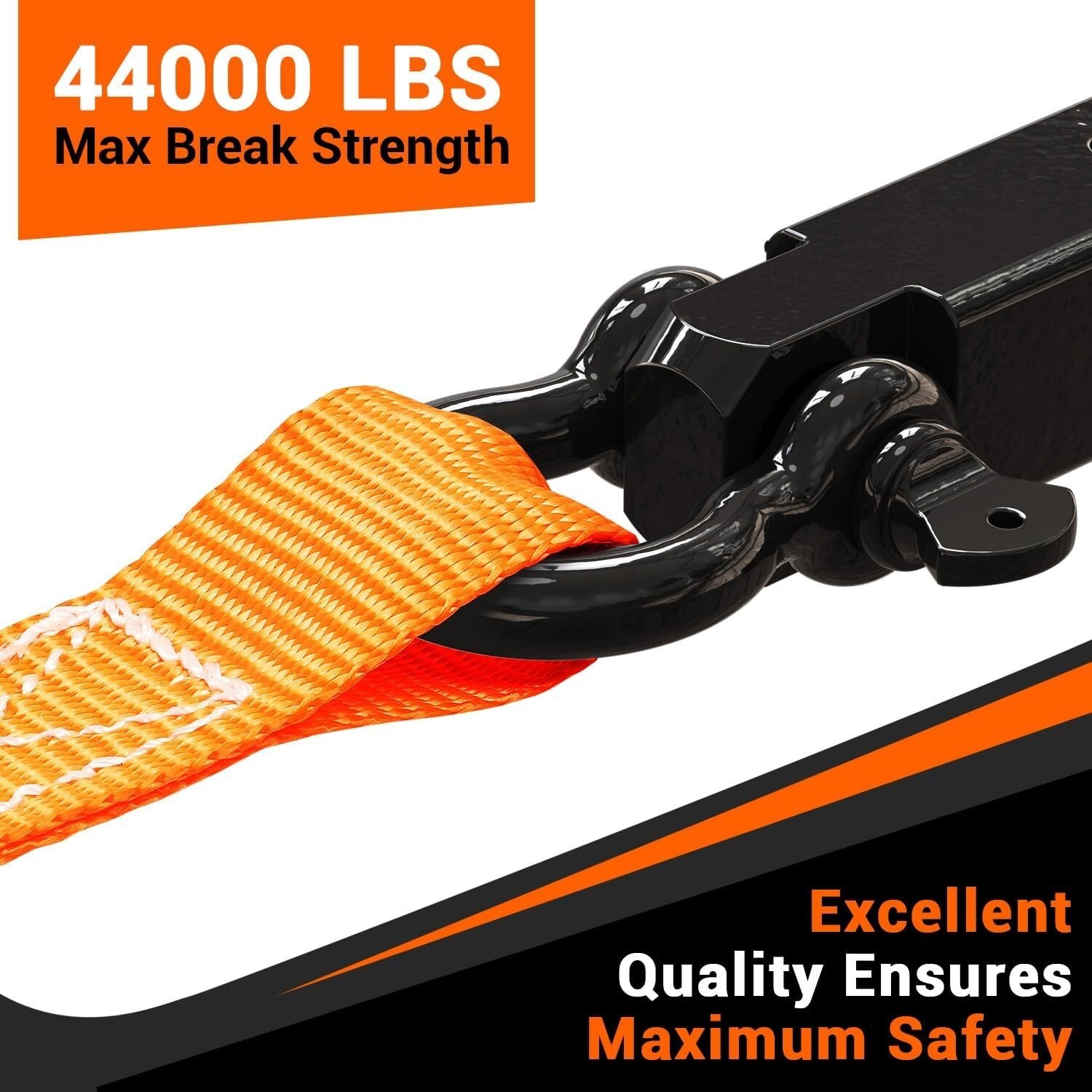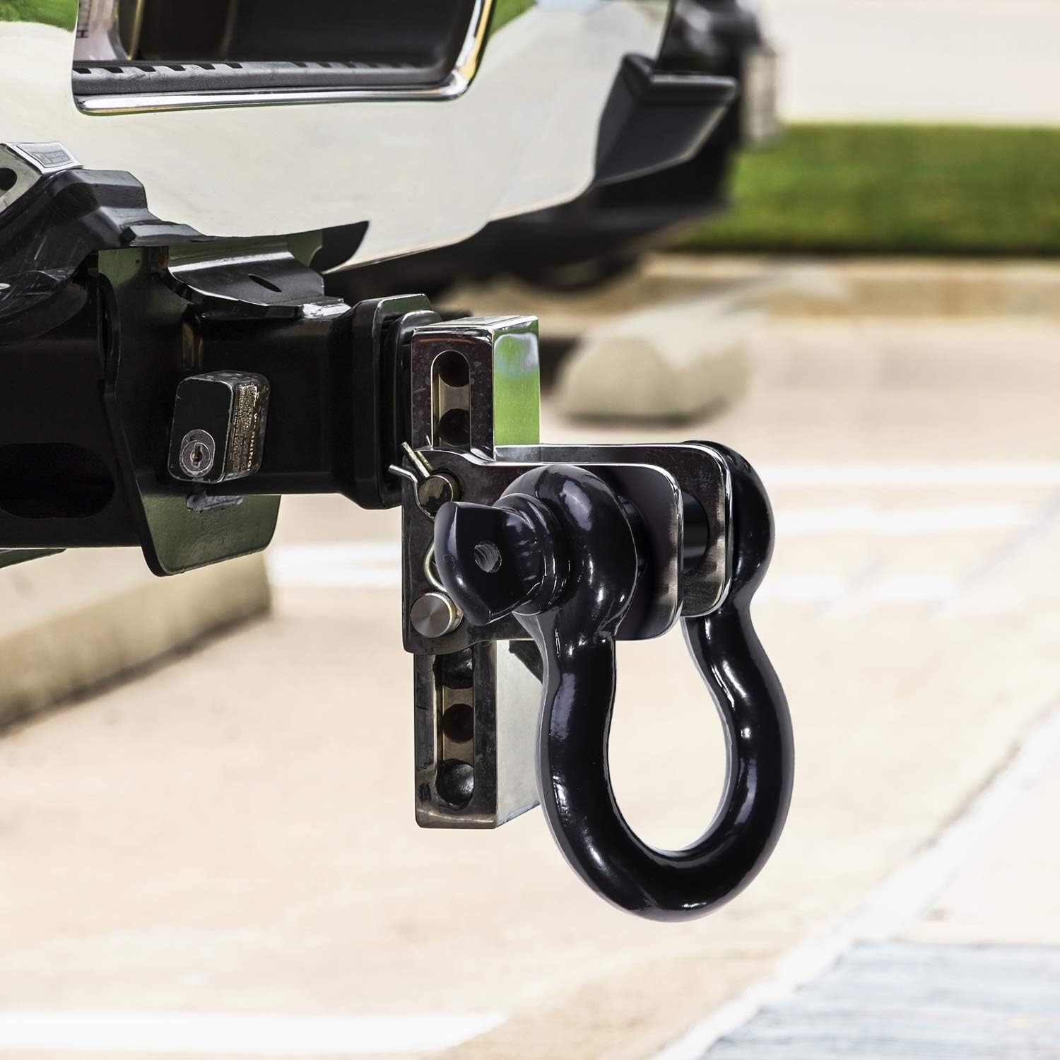 Our heavy-duty off-road recovery kit features a forged steel construction with a robust 4.75-ton (9500 lbs.) towing capacity, designed for reliable performance. It fits most off-road vehicles with D-ring mounts on front or rear bumpers, including 4WDs, SUVs, trucks, ATVs, and UTVs. The kit includes a 3/4-inch D-ring shackle with an industry-grade 7/8-inch pin, ideal for winching and rigging applications. Finished with a smooth, rust-resistant powder coating, it offers durability and a sleek appearance. Designed for safe and secure attachment, it provides superior points for straps, avoiding the risks associated with wrapping around hitch balls. Perfect for recovery operations and off-road adventures.