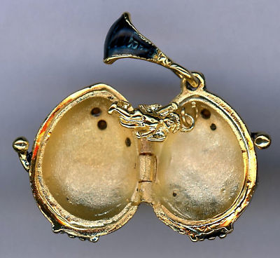 Le pendentif s'ouvre et a un ange suspendu jouant sa harpe.