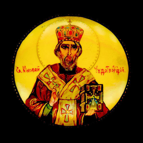 Russian hand painted brooches of religious saints_brooch_ 01, St. Nicholas- s...