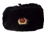 Russisch Ushanka Militär Hut Schwarz Mit / Sowjet Red Army Abzeichen Viskose Top