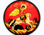 Russische Handgemalte Broschen Von Religiösen Heiligen, St. Georg/Drache