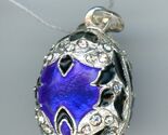 Primary image for Russische Kunst Silber Ei Anhänger, Tiefblau Ausgebreitet & Dekoration W / Klar