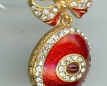 Russo Faberge Finto Uovo Ciondolo Di Rosso,Verde e Oro a Riccioli W/Clear