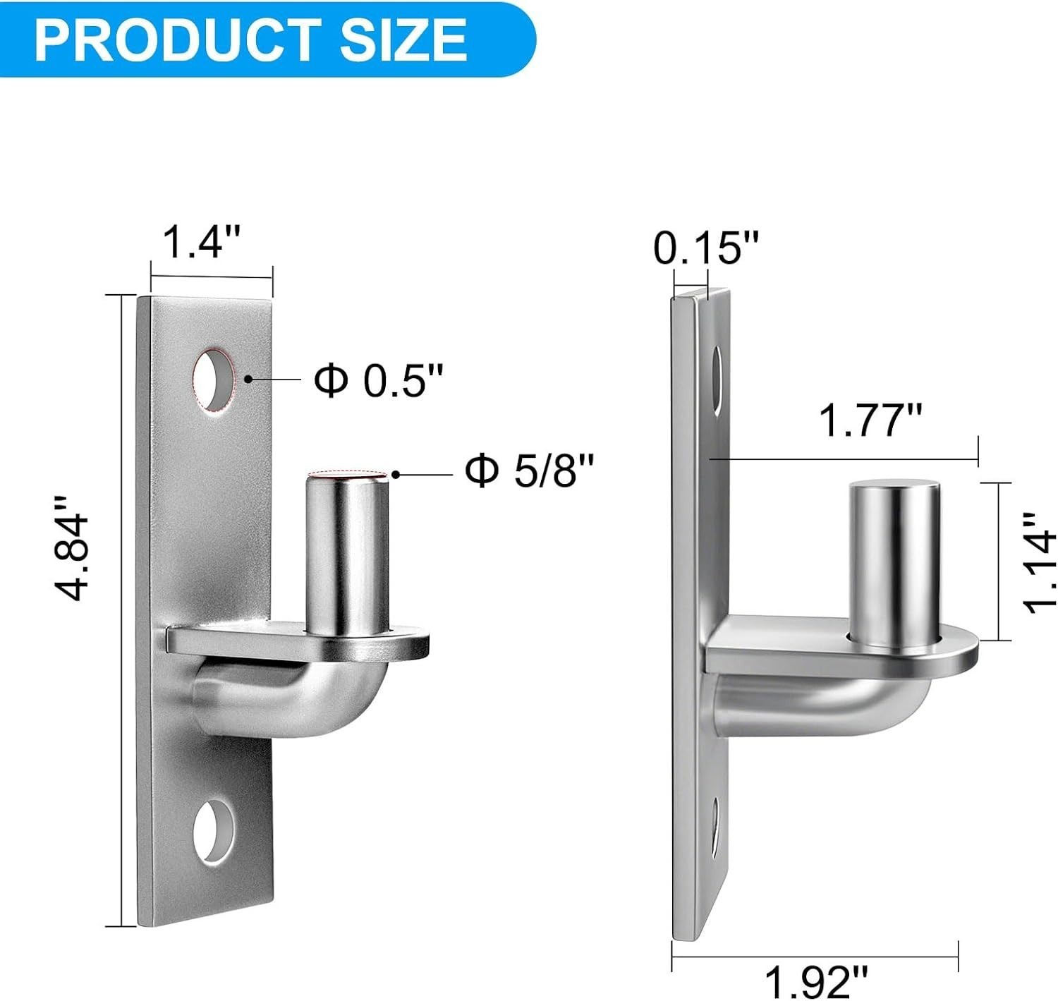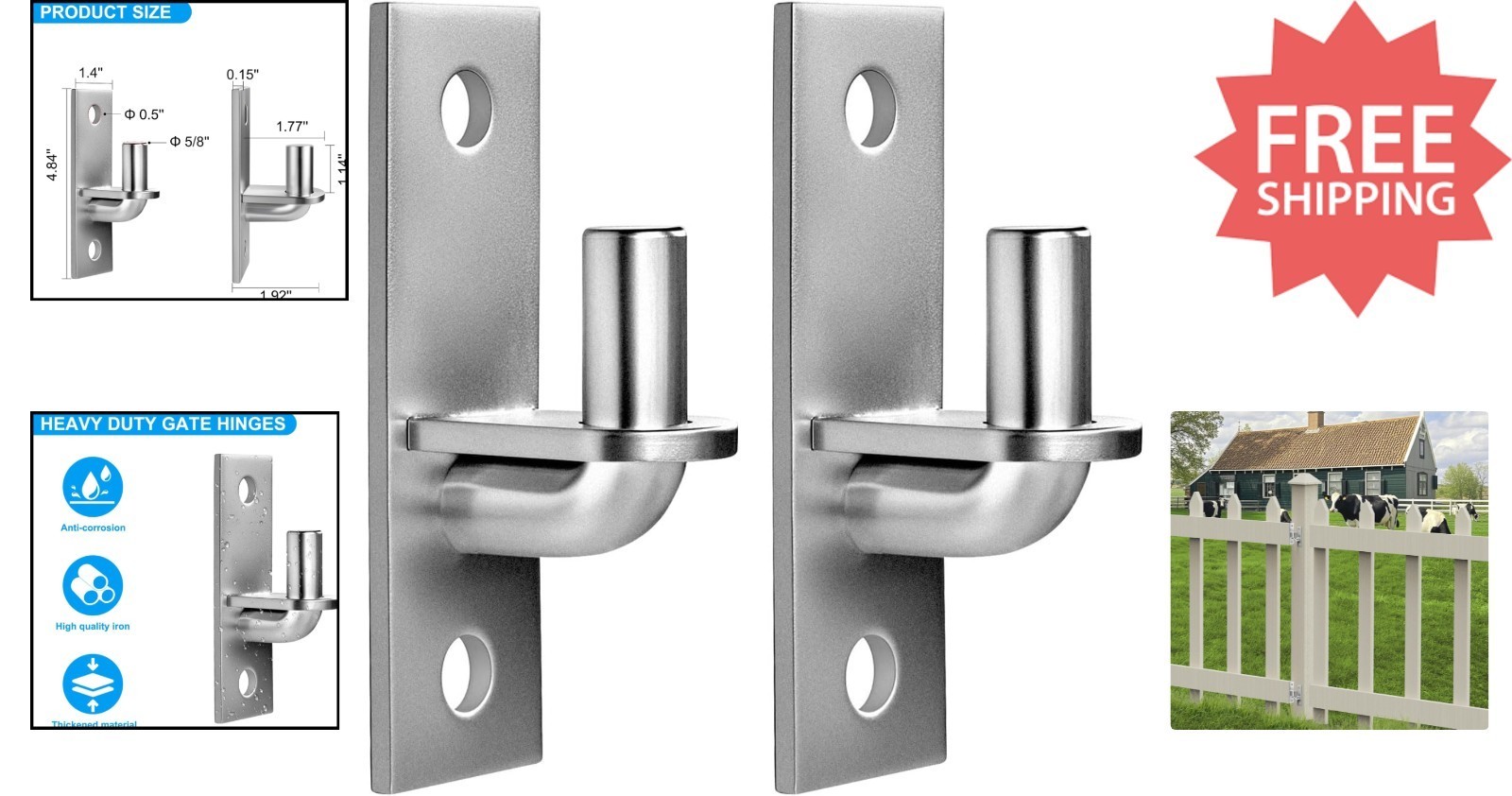 Upgrade your outdoor fencing with Lusheer Heavy Duty Gate Hinges, designed for durability and easy installation. Crafted from high-quality iron with a silver galvanized coating, these wall mount hinges resist rust and stand up to the elements over time. Each pack includes 2 sturdy hinges with a 5/8" diameter pin, compatible with standard frames and suitable for various applications such as barn doors, sheds, and fences. Measuring 4.84" x 1.4", these hinges are built to extend the lifespan of your gates and ensure smooth operation. Easy to install with basic tools, they are perfect for any fencing project.