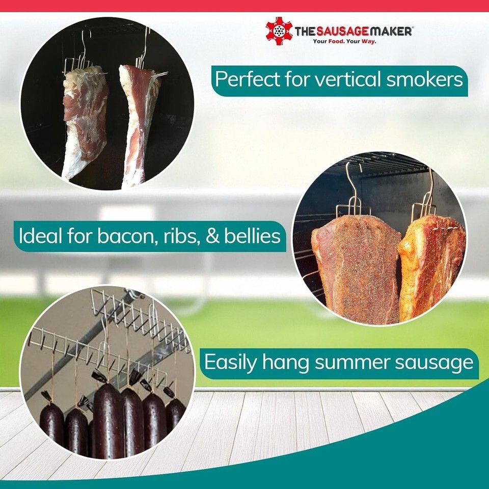 For the dedicated meat lover and smoker enthusiast, these hangers promise to enhance your smoking setup with quality and ease. Whether you're hanging bacon, ham, or brisket, or utilizing these hooks for sausage and meat processing, our hooks will deliver exceptional results every time.