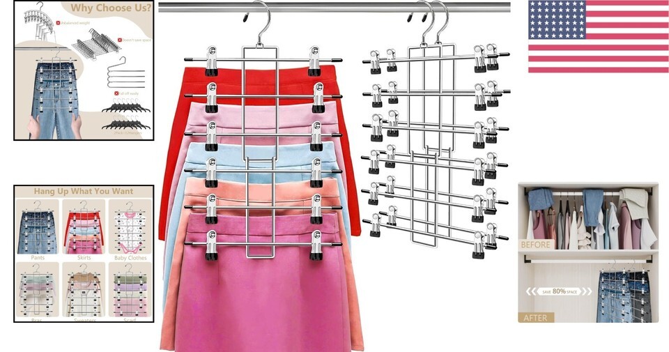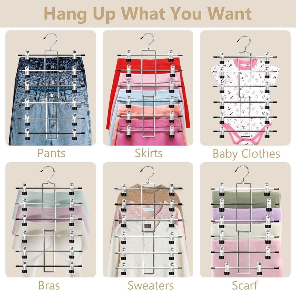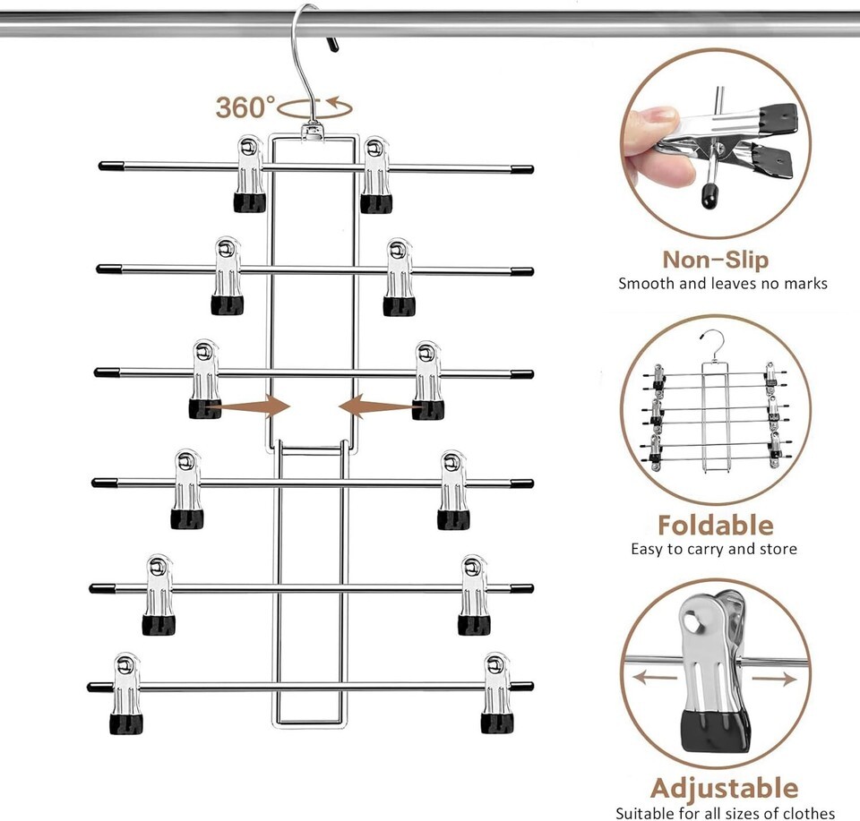 Space Saving Design: With 12 sturdy clips, this hanger allows you to hang at least 6 garments simultaneously, maximizing your wardrobe space while keeping it tidy and organized.