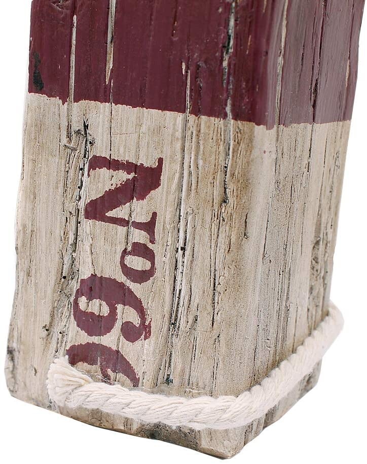 DOCKSIDE SEAGULL DECOR: Nautical theme decor features a seagull decoration sitting on a weathered dock piling decorated with a real piece of rope. Free standing seagull statue can be placed anywhere flat.