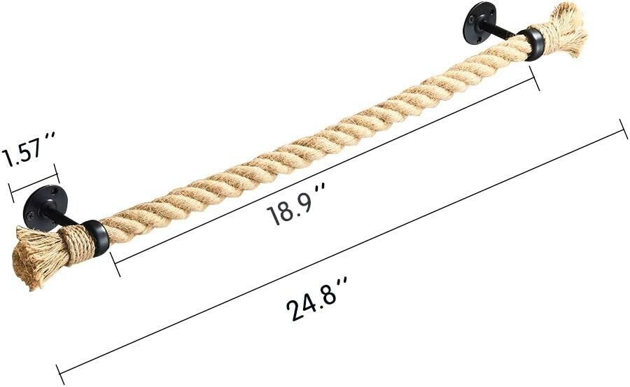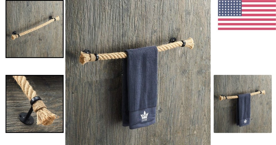 - Rustic Nautical Bathroom Towel Bar - 24'' Wall-Mounted Rope and Stainless Steel