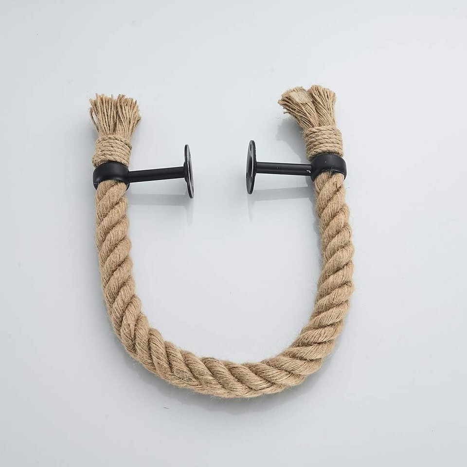 Transform your bathroom into a seaside escape with our Rustic Nautical Bathroom Towel Bar. Crafted with natural rustic rope and accented by matte black stainless steel, this towel rack is the perfect way to embrace eco-friendly luxury while adding a touch of maritime charm to your decor.