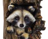 - Rustic Western Lifelike Gray Raccoon Hiding In Tree Trunk Decorative Figurine