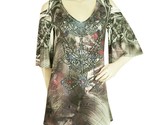 S-12 S-Twelve Cut Shoulders Multicolor Jeweled Long Blouse Top size M