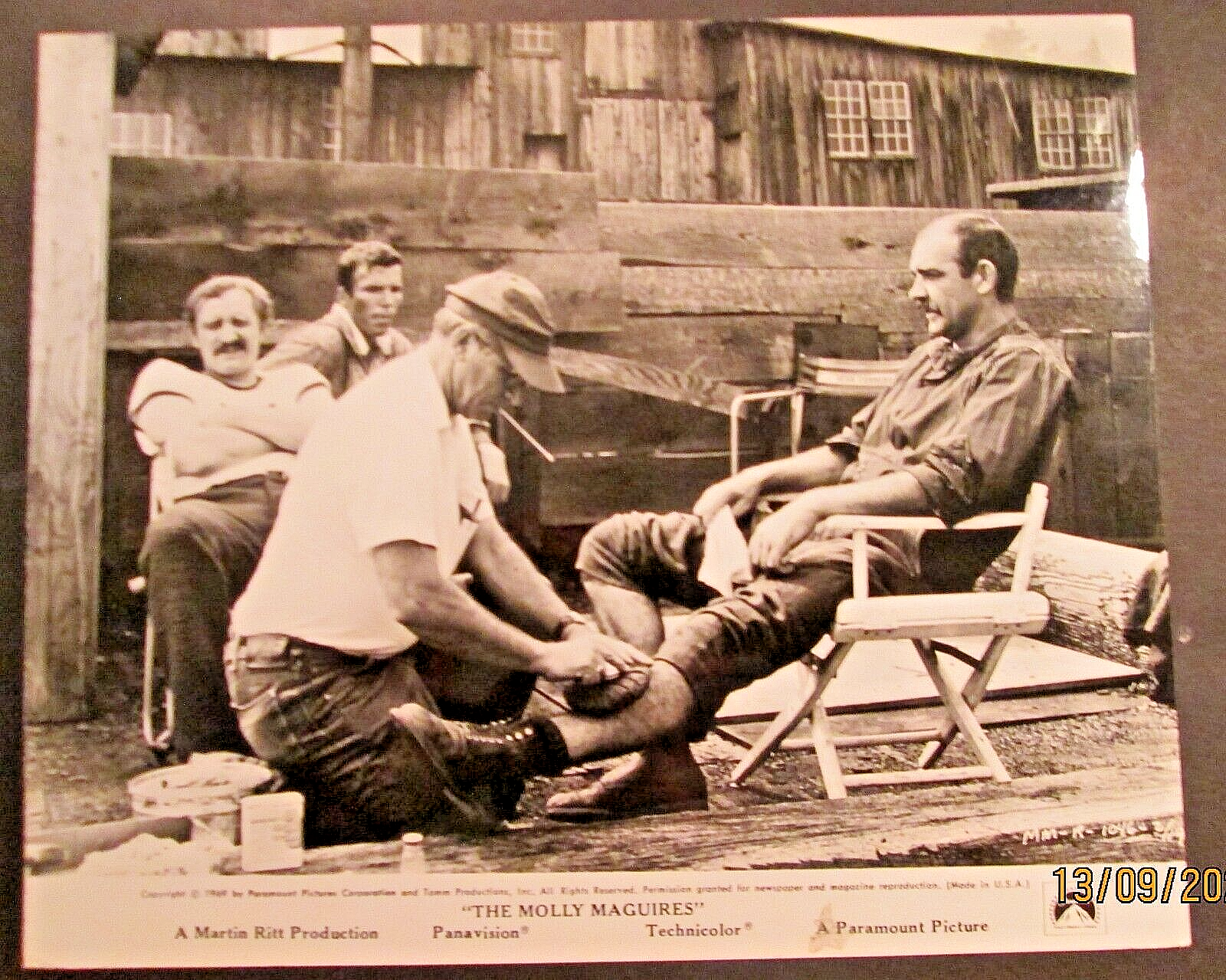 SEAN CONNERY: ( ORIG,ON THE SET CANDID VINTAGE RARE PHOTO) CLASSIC CONNERY (ORIG,CANDID CONNERY ON THE SET OF THE MOLLY MAGUIRES)