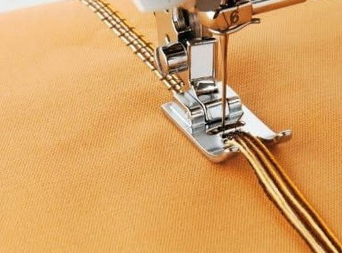 Hole Cording foot is used for embellishing up to 7 narrow cords. Easy