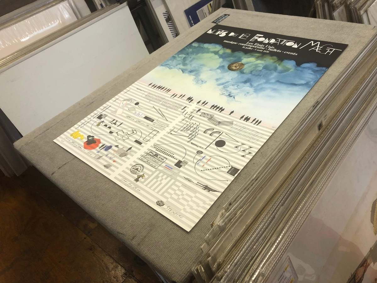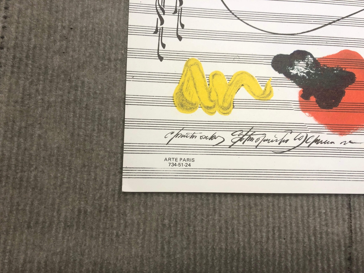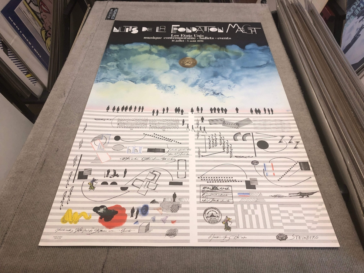 Sku: GMF34Artist: Saul SteinbergTitle: Nuits De La FondationYear: 1970Signed: NoMedium: LithographPaper Size: 34.75 x 22.75 inches ( 88 x 58 cm )Image Size: 34.75 x 22.75 inches ( 88 x 58 cm )Edition Size: UnknownFramed: No: Inquire with our experts for framing suggestions.Condition: A: MintAdditional Details: This is an original vintage poster from 1970 by Saul Steinberg, created to celebrate a special event at the Maeght Gallery in Paris, titled Nuits de La Fondation. The event featured an exclusive evening showcasing the gallery?s primary collection pieces. Steinberg?s artwork for the poster depicts musical bars intertwined with his iconic imagery of people, objects, and musical notes, blending his signature whimsical style with a celebration of art and music.