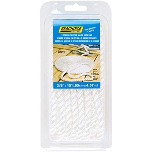 - SEACHOICE 3-Strand Twisted Nylon Dock Line 3/8" x 15' 42511 White