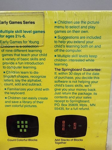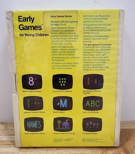 SEALED 1985 Springboard Early Games for Yong Children Disk Apple II+, IIe, IIc