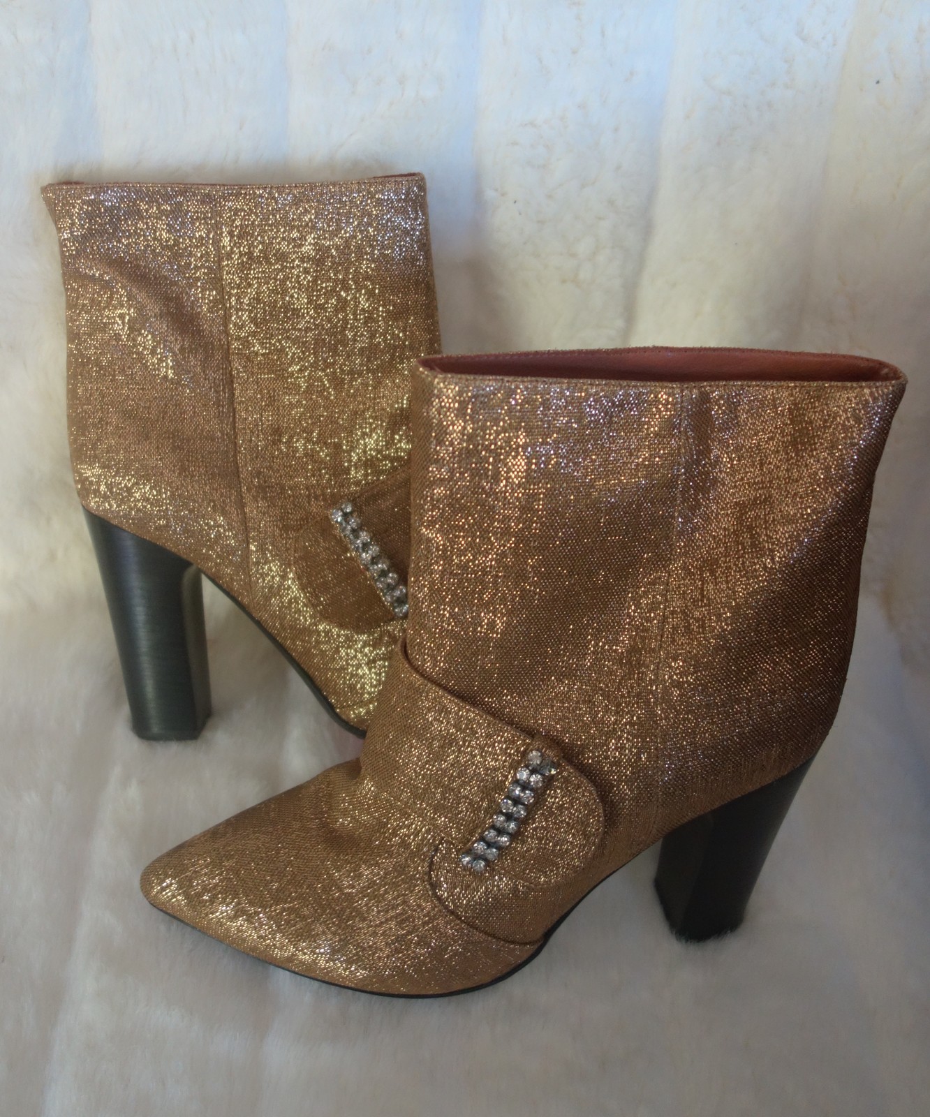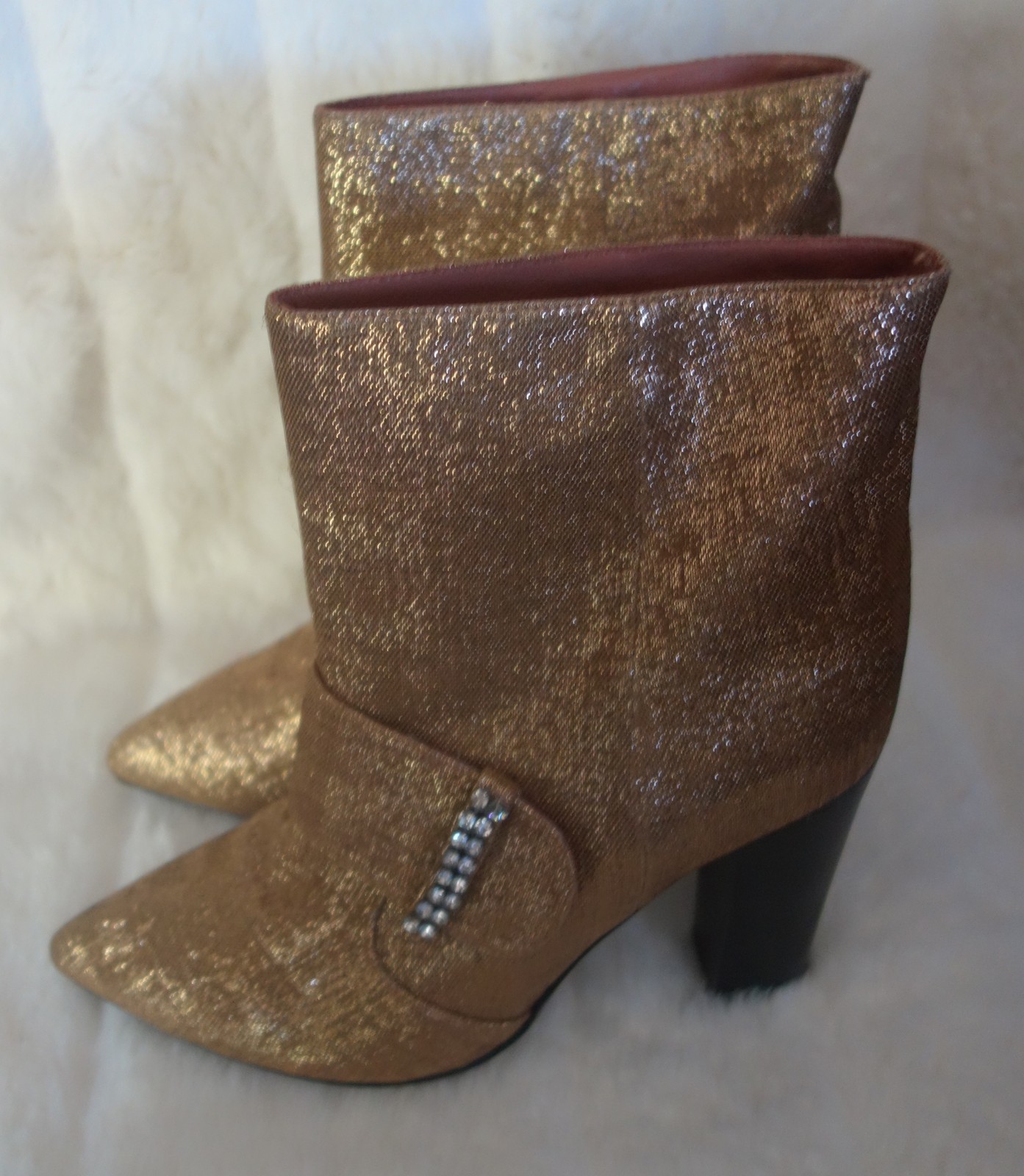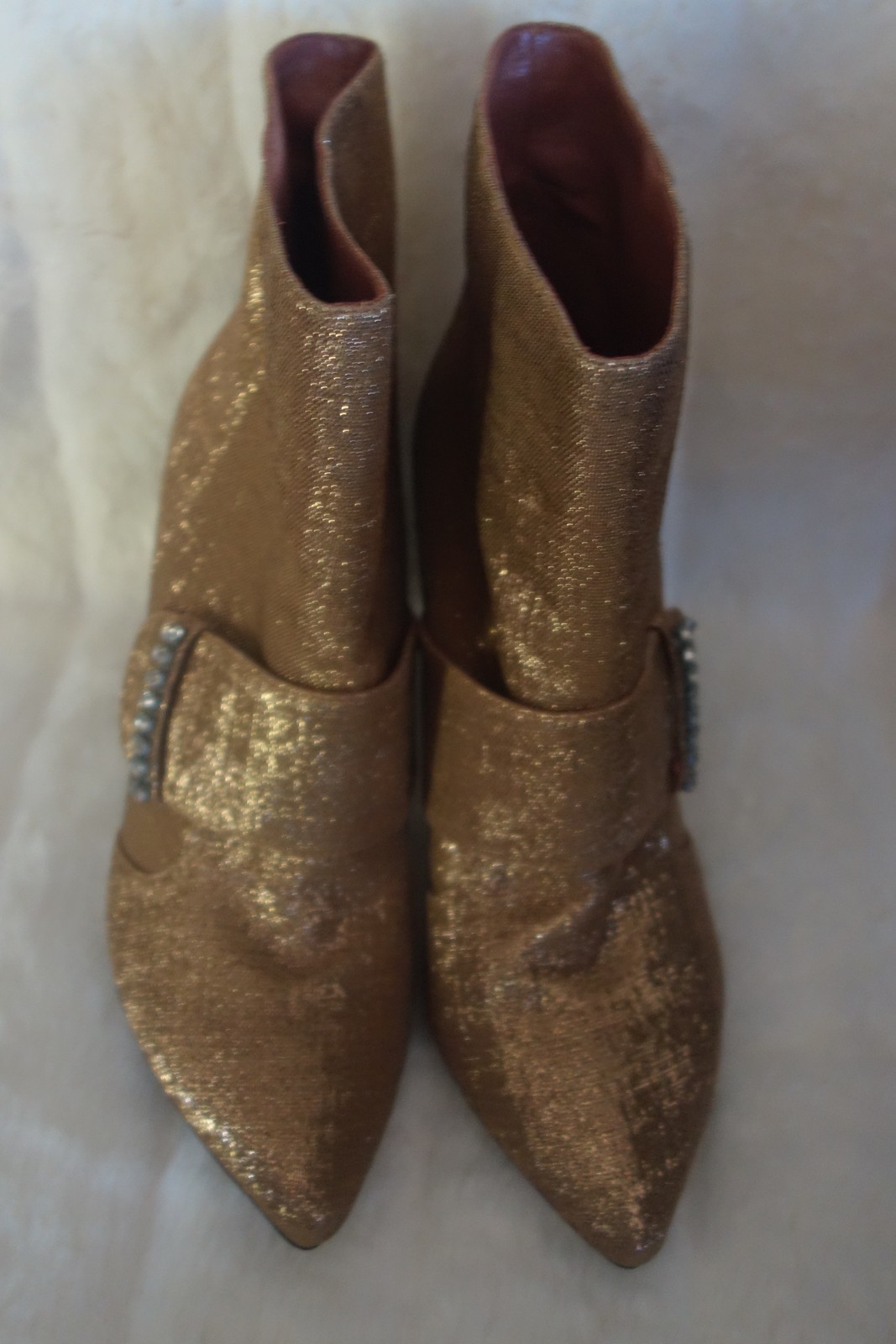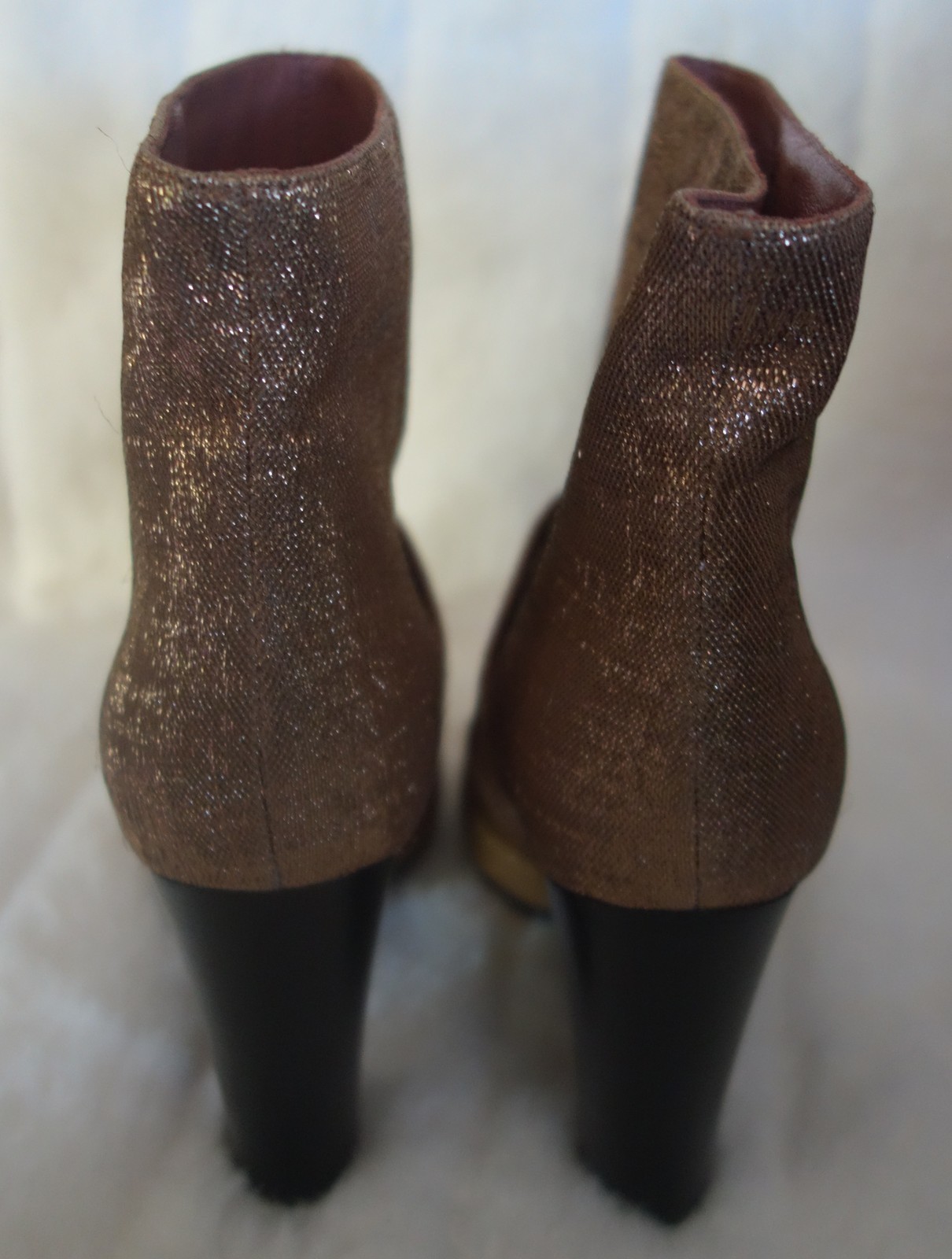 SEE BY CHLOE Designer Metallic Gold Pointed Toe Heel Bootie Shoes 39.5 $425 new