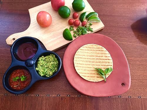 Bullet point: VERSATILE COOKING PANS: Toque Blanche is proud to offer this Chamba black clay comal. Chamba comales are a type of griddle used for cooking tortillas, roasting chilies, and other vegetables. You can also use this stovetop griddle to toast spices and sear meats.