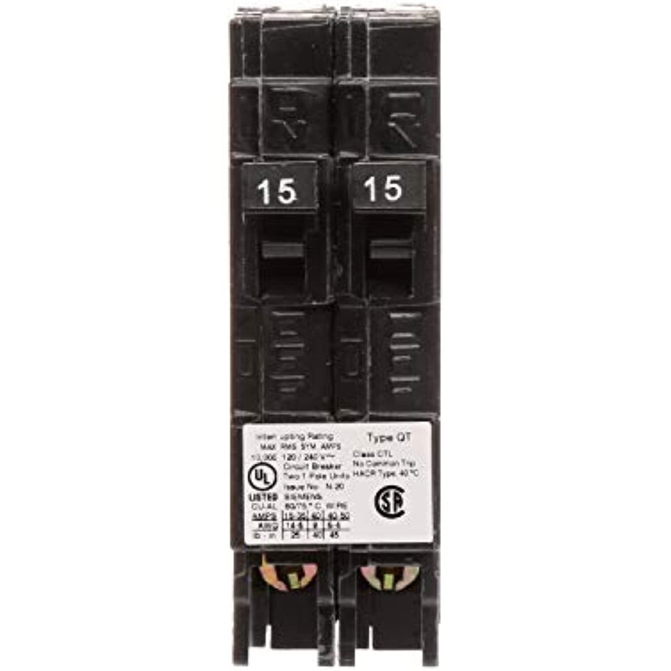 - SIEMENS Q1515 Two 15-Amp Single Pole 120-Volt Circuit, use only Where Type QT