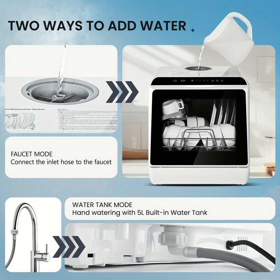 Portable Compact Dishwasher, Small Countertop Dishwasher, Equipped with A 5-Liter Built-In Water Tank, Offers 6 Modes And Baby Care, Ideal for Flats And RVs, No Water Installation Required