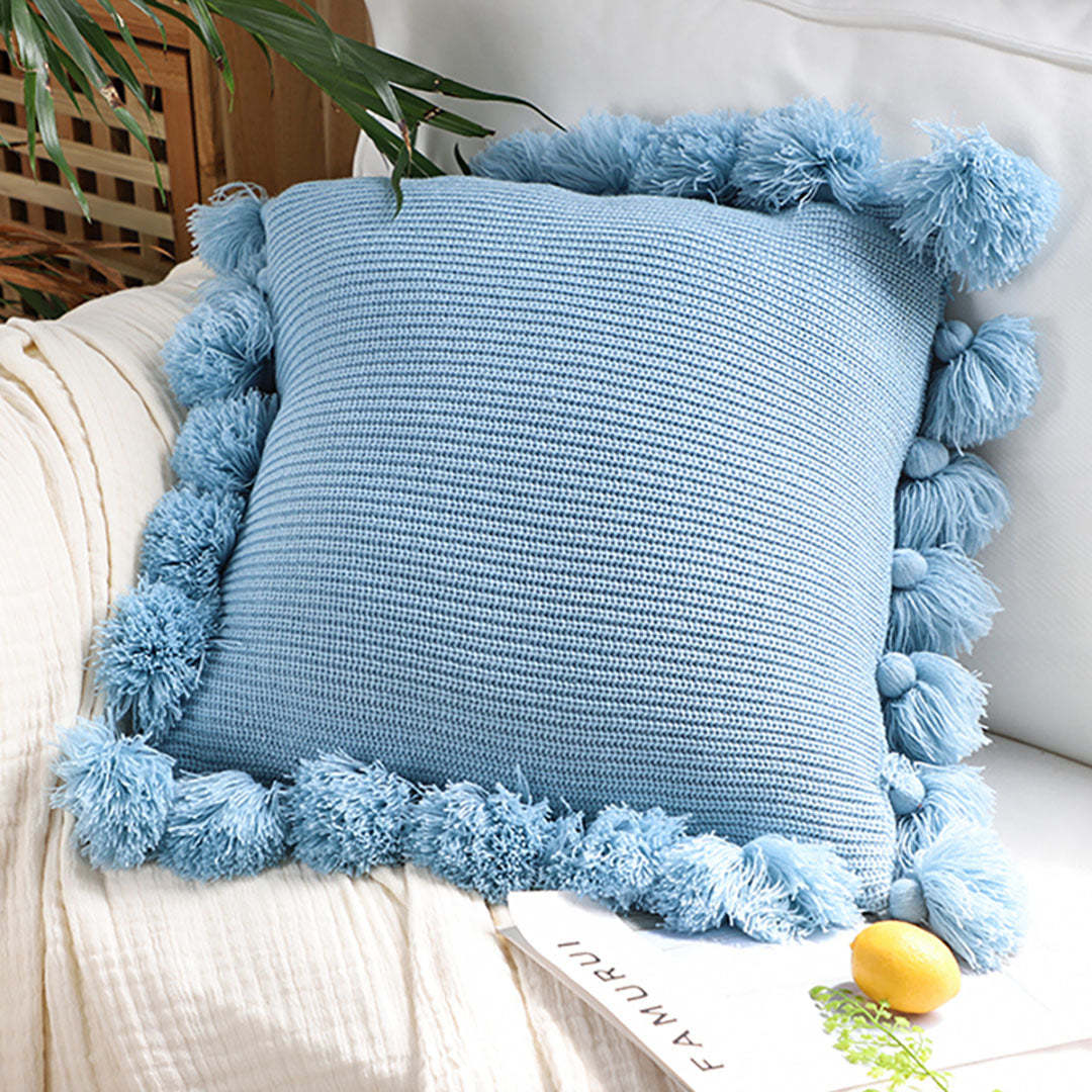 - SOGA 2X 45cm Textured Pillowcase with Pom-Pom Trim (Sky Blue)