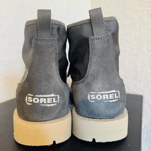 SOREL Caribou OTM Waterproof Chukka Men's Leather Suede Boot Size 14 Color: Grey/Brown NEW WITH TAGS IN ORIGINAL PACKAGING Seam-sealed and waterproof, these suede and nylon chukka boots are made to stomp through the seasons with a high-traction lug sole and removable EVA footbed. Leather and textile upper/textile lining/rubber and synthetic sole