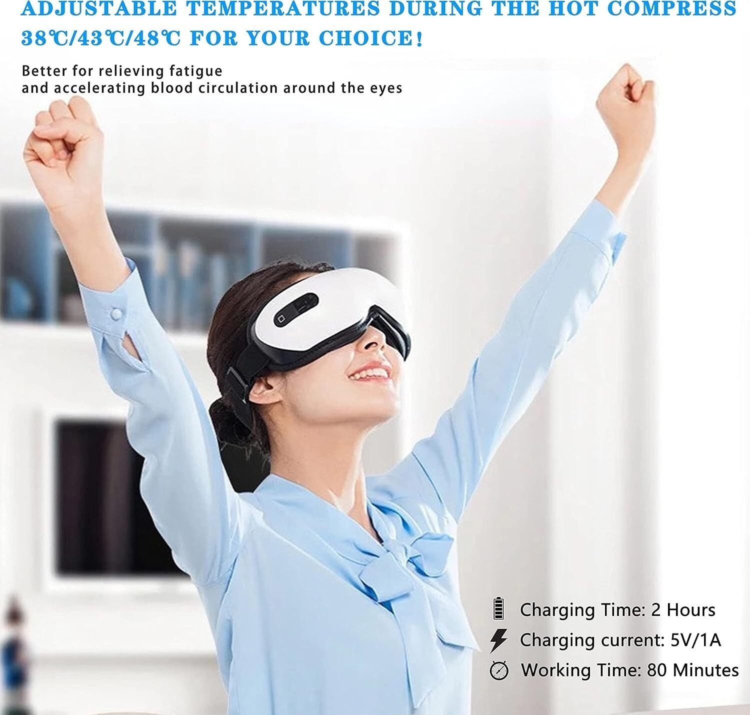 BETTER CARE AND GIFT: For Gamers, overtime workers, students, people who spend a long time watching the screen of mobile phones and computers, people who often stay up late, etc. We do not recommend to use the eye massager if you have undergone eye operation, retina condition, cataract, etc.