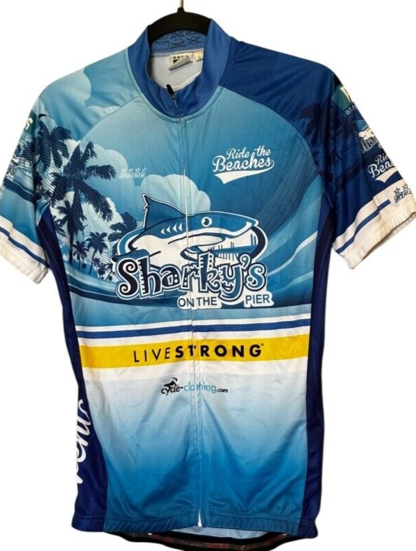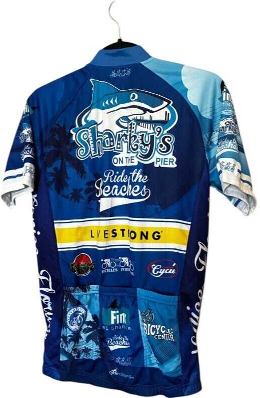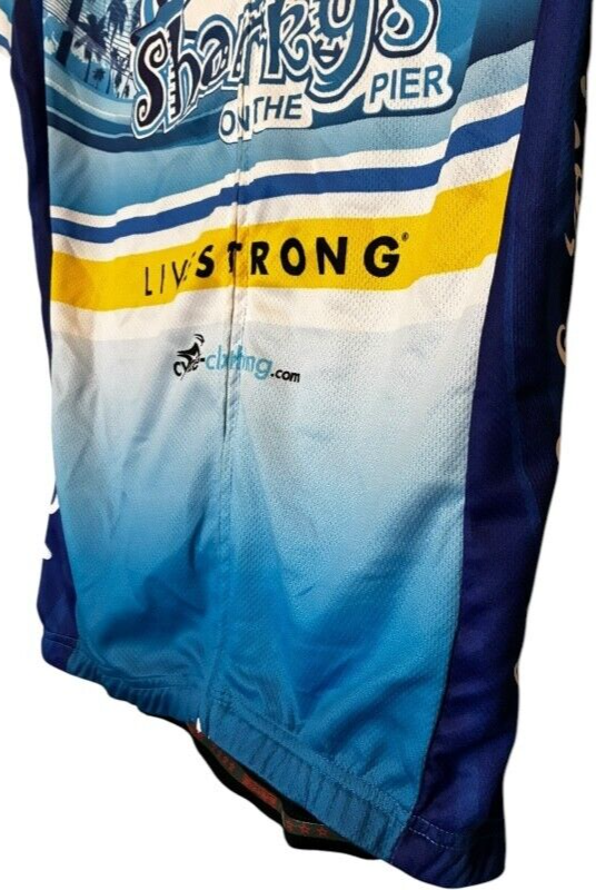 speg men's Sharky's on the Pier LiveStrong Full Zip Short Sleeve Cycling Jersey size S Buy with confidence. Check out our reviews. Also, happy to combine shipping to save you when you buy multiple items.