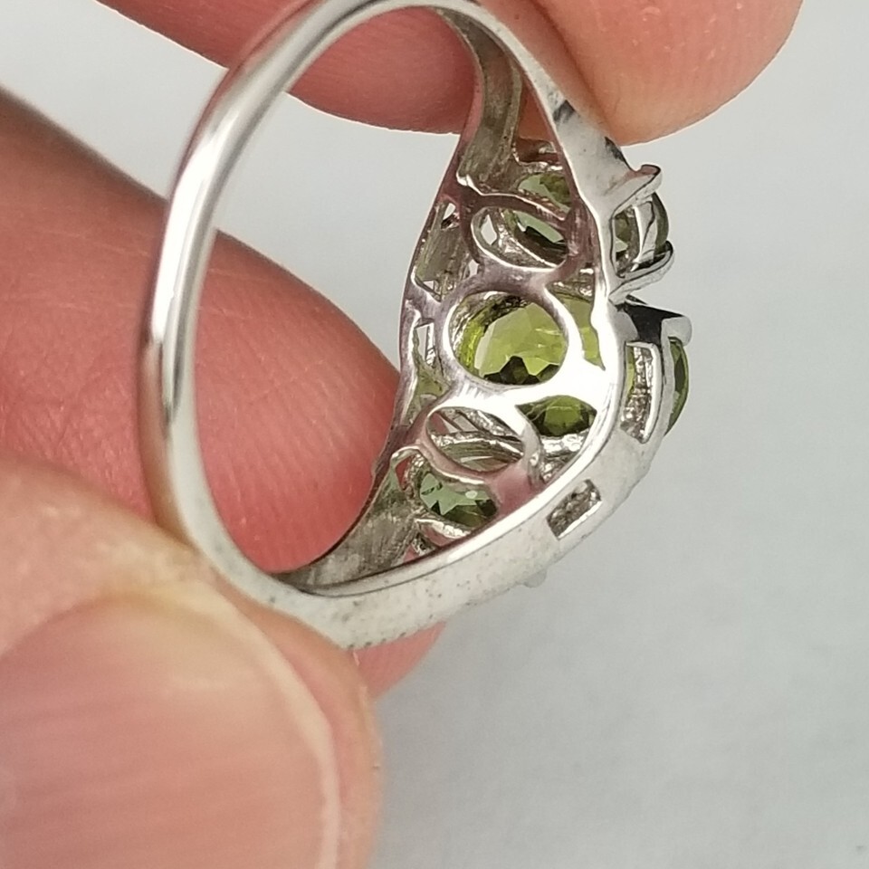 RIGHT FROM AN ESTATE SALE OUT OF LANCASTER OHIO..... Looks to have a main stone of peridot. The two side gemstones have sort of a gold color and may be golden sapphire. The pictures make the side stones look green but they are more of a golden color. Marke 925 and STS. Size 7. No tarnish and ready to wear. It will be protected well and insured. Let me know if you have questions. Location D3E, MER