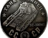 Discover the SU-100M1 Tank Collector's Fantasy Coin, a remarkable tribute to one of the most significant armored vehicles of World War II. This coin features an intricately detailed depiction of the Soviet tank SU-100M1, renowned for its maneuverability and powerful armament, showcasing the technological advancements of the Soviet military during that era. Above the tank's image, the inscription "???? ???????" (Tank Destroyer) highlights its crucial role in combat against enemy tanks. The lower portion of the coin includes the letters CCCP, a reference to the former Soviet Union, alongside the emblem of the USSR, adding substantial historical value to this collector's item. On the reverse side, you will find a classic representation of Soviet victory in 1945, featuring the central star symbolizing the Spasskaya Tower of the Kremlin, encircled by laurel branches and the inscription "??????" (Victory). The mention of "????????? ??????" indicates a nominal value of 50 rubles, though this coin is intended exclusively for collectors, not for circulation. Such coins were often created to commemorate the significant victories of the Great Patriotic War and to honor the achievements of the Soviet army. This SU-100M1 Tank Collector's Fantasy Coin is not only a unique conversation piece but also a meaningful addition to any military history collection.