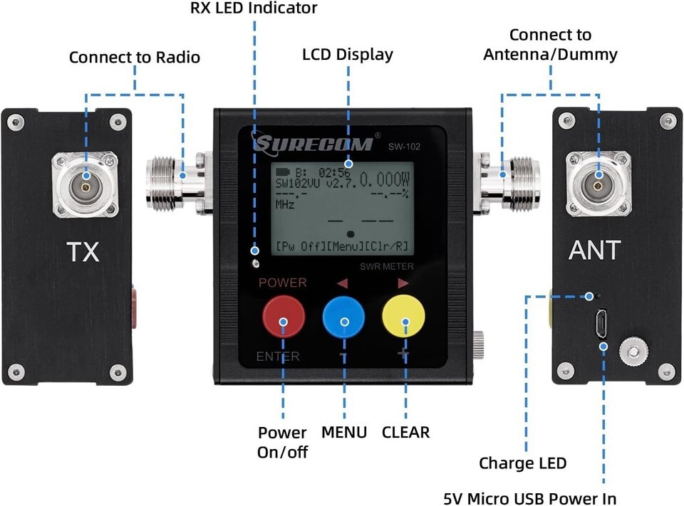 - SW-102 Digital VHF/UHF SWR Power Meter 125-525MHz for Ham Radio, N-Type Conne...
